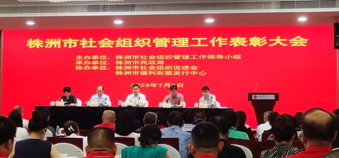2023年7月5日,株洲市社会组织管理工作表彰大会在华天大酒店多功能厅举行,市政府副秘书长谭伟生主持会议。市民政局党组书记黄上峰作了全市社会组织管理工作总结安排部署;市委组织部副部长、两新工委书记廖文辉宣读了对先进基层党组织、优秀党务工作者、优秀共产党员的表彰决定;市民政局局长谭艳宣读了对5A\4A\3A级社会组织、2022年社会组织管理工作先进单位、2022年社会组织先进单位、2022年慈善公益先进单位的表彰决定。副市长蒋湘晖代表市政府参加了本次会议并讲话,向受到表彰的先进单位和个人表示祝贺,向长期以来关心支持社会组织事业发展的各界人士表示感谢!