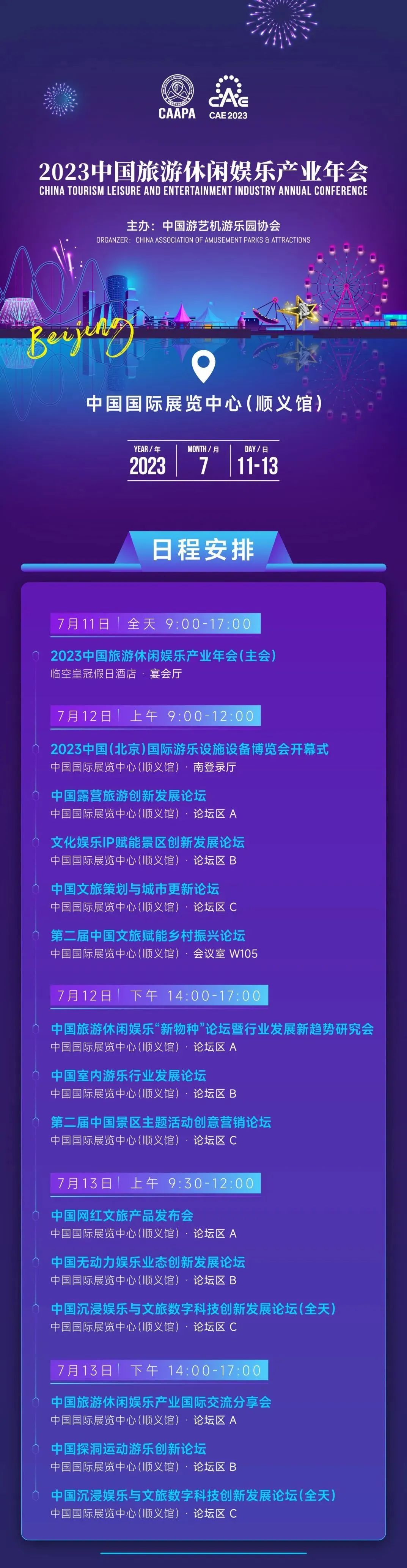 中国游协 (CAAPA)主办的2023中国旅游休闲娱乐产业年会将于7月11-13日在北京召开,聚焦生活方式转变下旅游休闲娱乐场景变革,探讨旅游休闲新场景、新趋势。