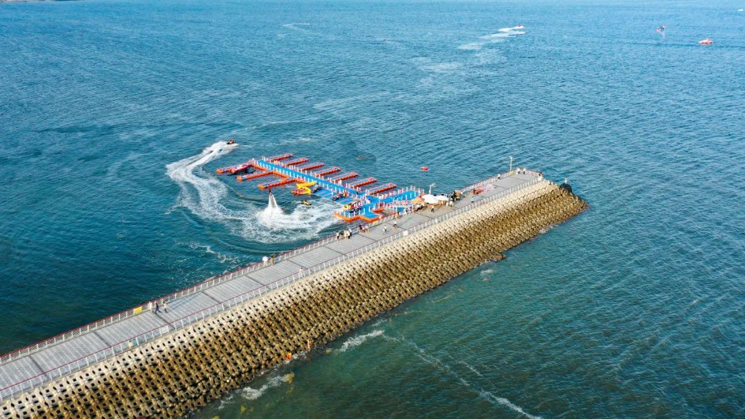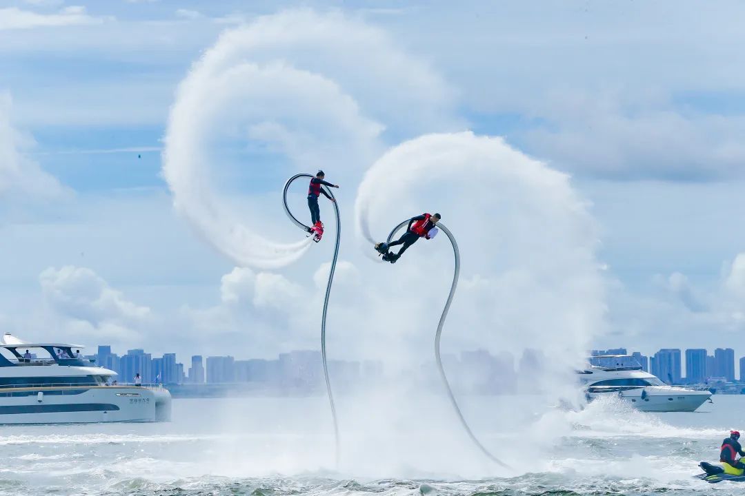 其中,浪漫线滨海水运动度假区体育项目作为我市第一个滨海涉水运动旅游项目,重点推出摩托艇、尾波冲浪、彩虹拖伞、动力滑板、水上飞人、动感飞艇、帆船、滑水、小飞鱼、香蕉船和浪漫线观光游等十余种潮玩水运动产品,让游客在这里纵享欢乐,感受绝佳的亲水体验。