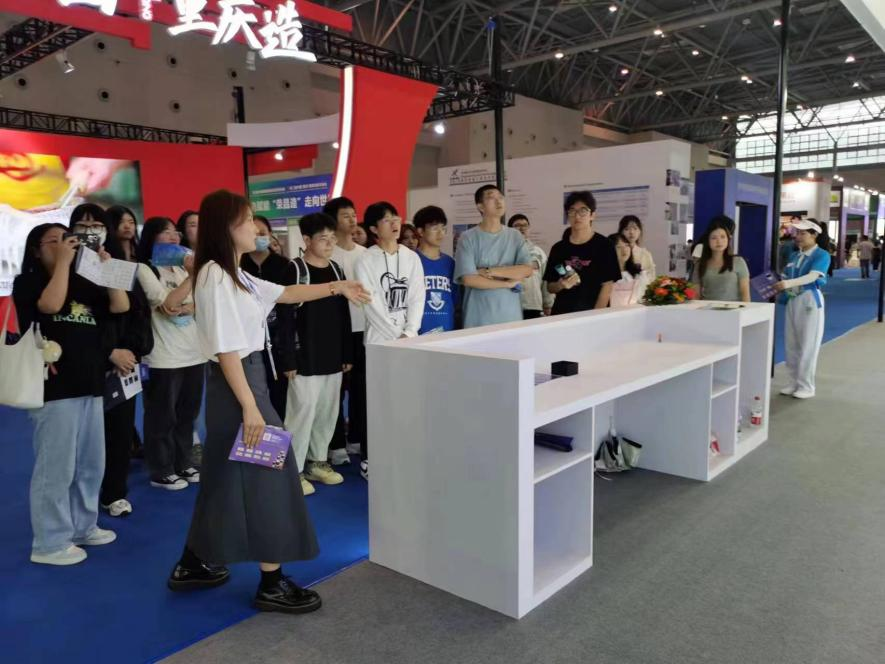 在中国(重庆)跨境电商交易会现场,师生们参加了西部跨境电商人才交流大会,了解了产业界对跨境电商人才素养的要求。同时,师生团队参访了交易会的重点企业和校企合作单位——重庆渝欧跨境电商有限公司。该公司校友详细介绍母婴、美妆等品类的进口模式,并以自己的实习、入职情况和职业经历与学弟学妹们进行了分享交流。