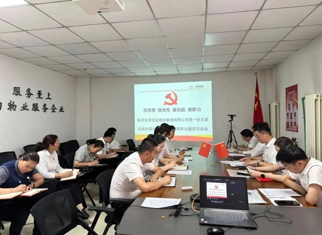 7月6日,金泰物业第一党支部举办“学思想 强党性 重实践 建新功——庆祝中国共产党成立102周年”主题党日活动。(胡燕枝)