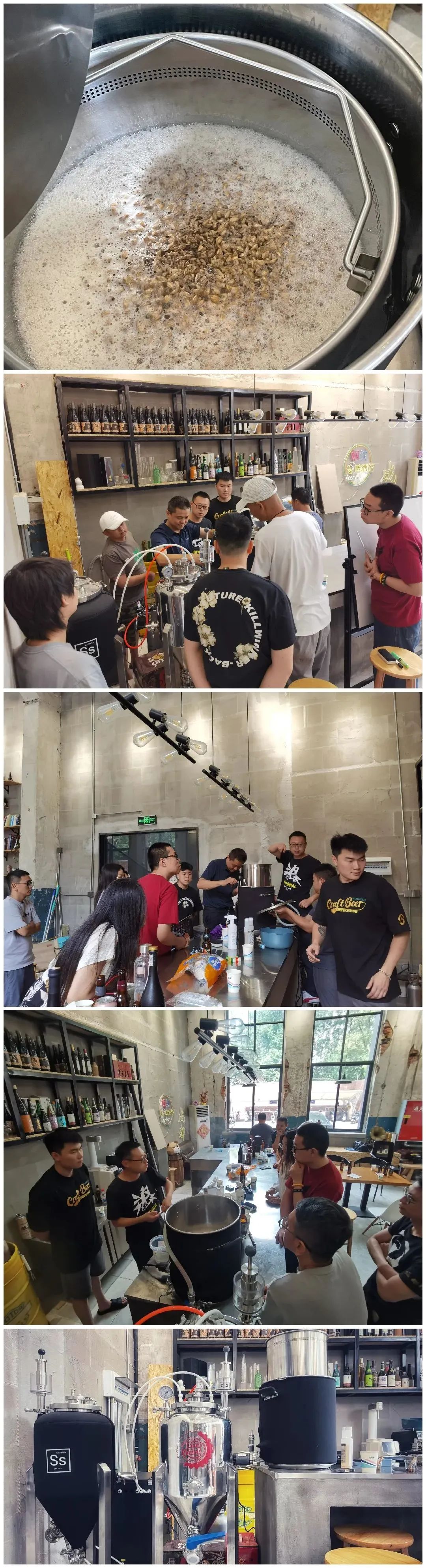 在王厂长的指导下,通过不同温度长时间的蒸煮获取酿酒麦汁,分不同步骤分别加入啤酒花材料,最后灌装加入酵母密封,一款 英式苦啤 大家就一起完成灌装了。