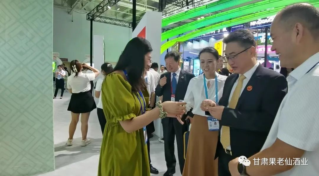 省市县相关领导莅临果老仙酒业展位视察指导会展工作。