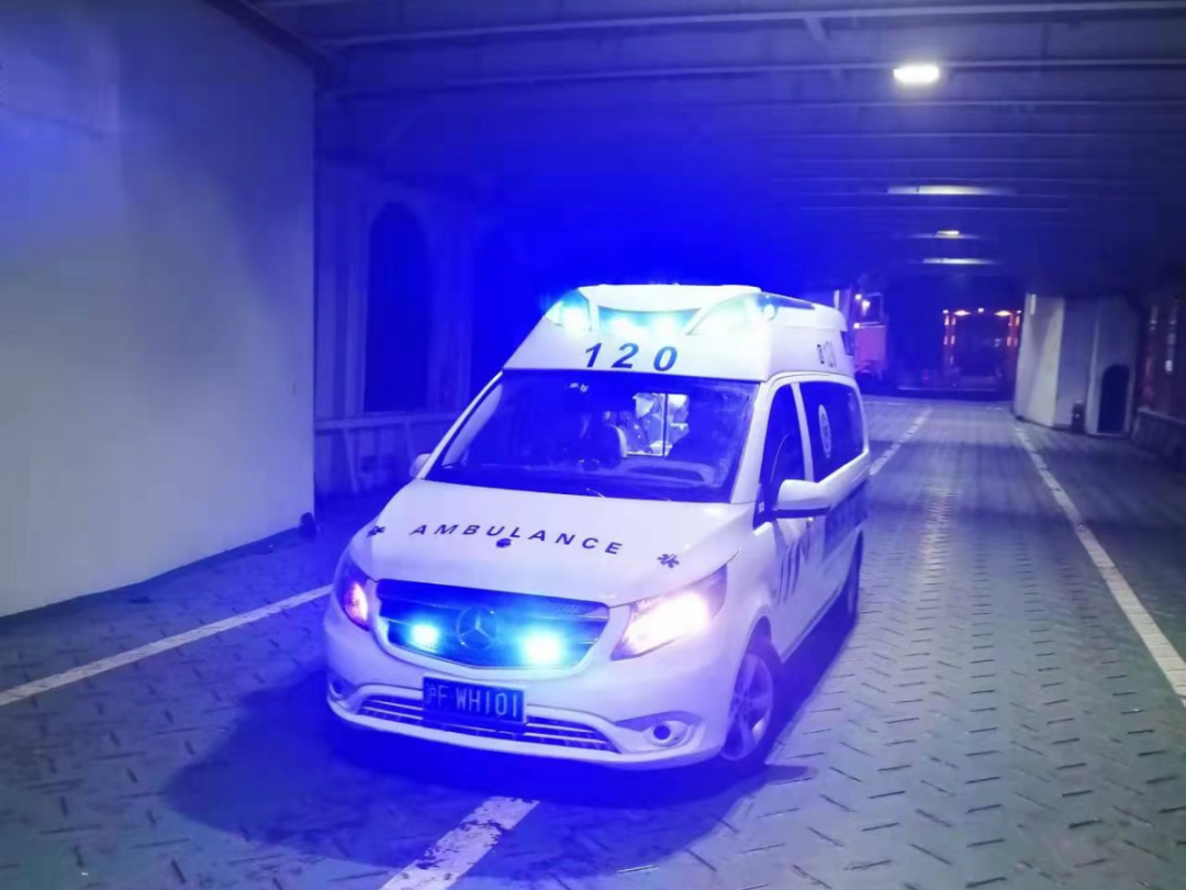 ↑ 1月31日晚23:10,长横对江渡在收渡后发生一起夜间急救,“沪航18”轮与横沙站值班人员紧密配合,将一辆装载急救病人的120车辆顺利运输出岛。