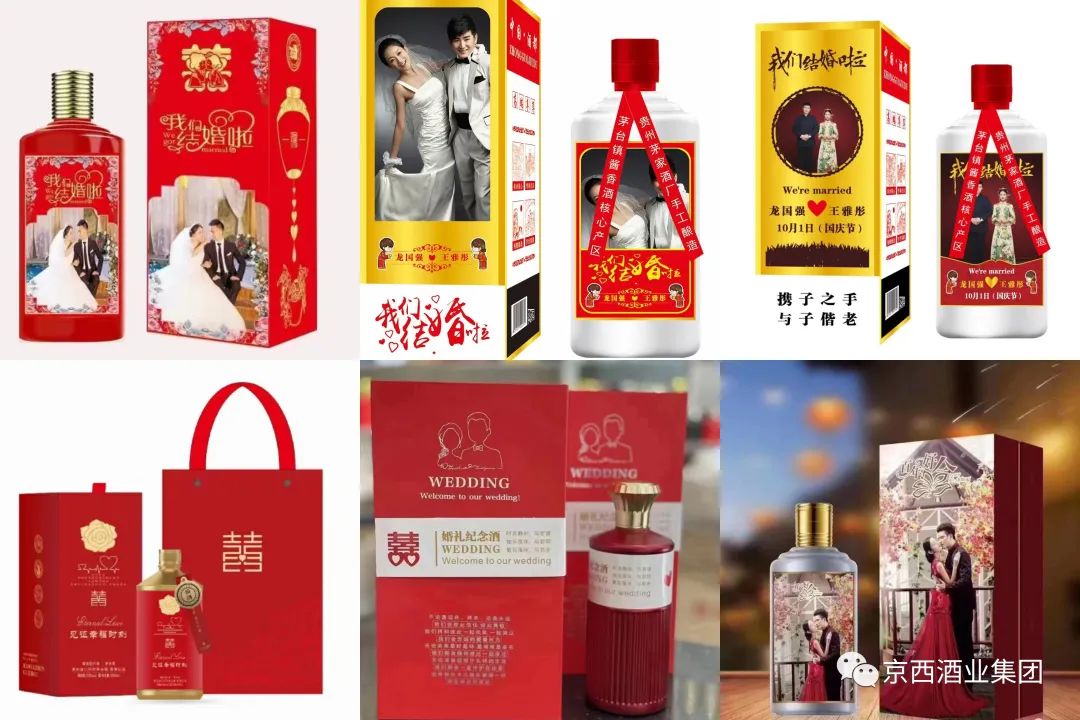 婚宴定制酒可以根据自己的想法在酒瓶上印自己的结婚照、名字或者对未来生活的期许等内容,当酒标和包装上印刻有这些专属内容的时候,一瓶普通的白酒就变成了一款有鲜明个性的婚宴用酒,成为婚宴酒桌上的一大亮点。而且婚宴定制酒能与婚礼的主题相应景,增加婚礼的特色和亮点,这样对于新人和来宾都是一种不同的感受。