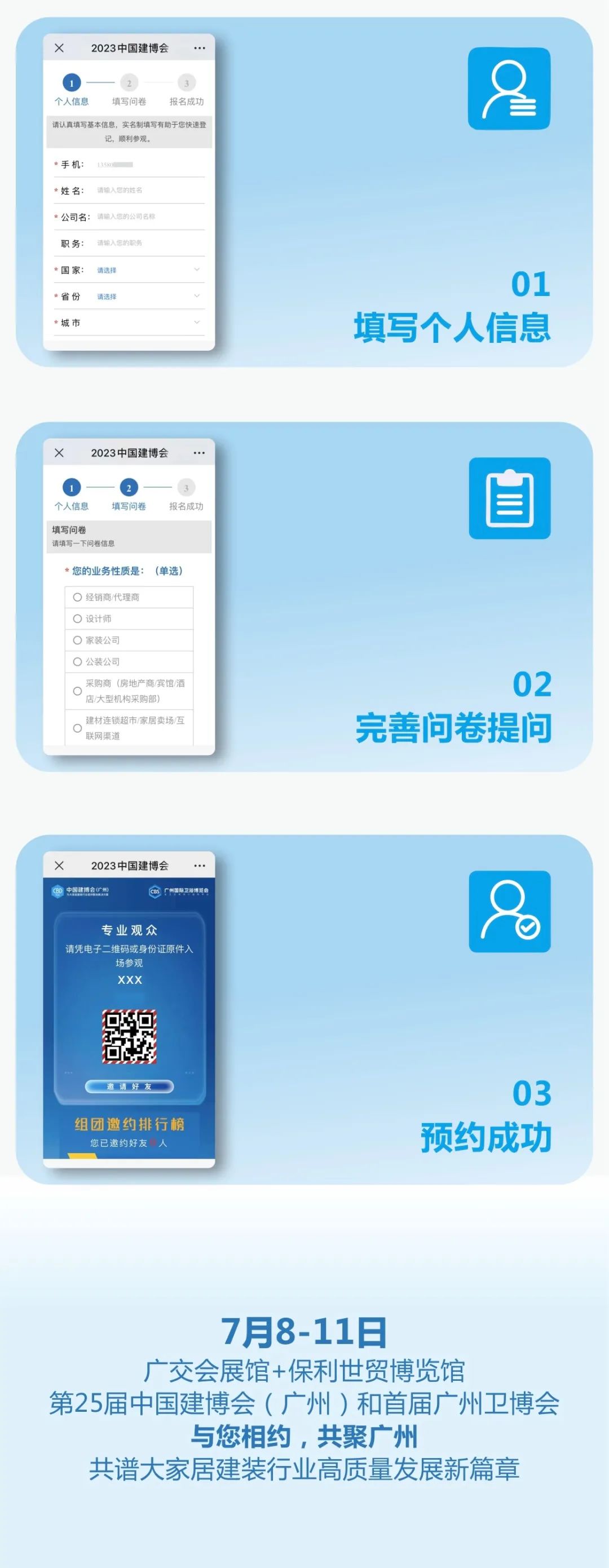 1、扫码或点击本文左下角“阅读原文”,进入建博会观展登记页面,提前实名登记,领取预约二维码。