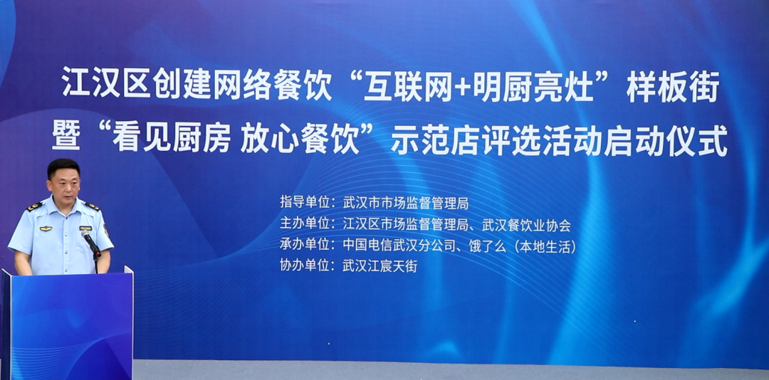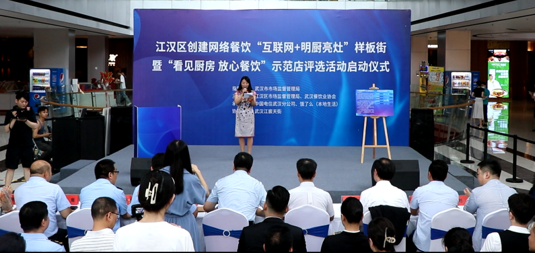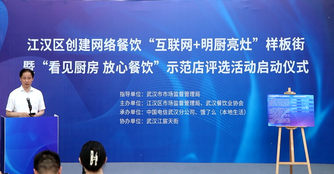 7月7日,由武汉市市场监督管理局指导,江汉区市场监督管理局、武汉餐饮业协会主办,中国电信武汉分公司和饿了么(本地生活)承办的创建网络餐饮“互联网+明厨亮灶”样板街暨“看见厨房 放心餐饮”示范店评选活动启动仪式在江宸天街举行,武汉餐饮企业又增添了一张“新名片”!