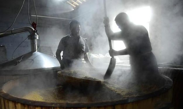 2、立渣:新投产时,渣子经过拌料、蒸煮糊化、加糖化发酵剂,第一次酿酒发酵的程序。