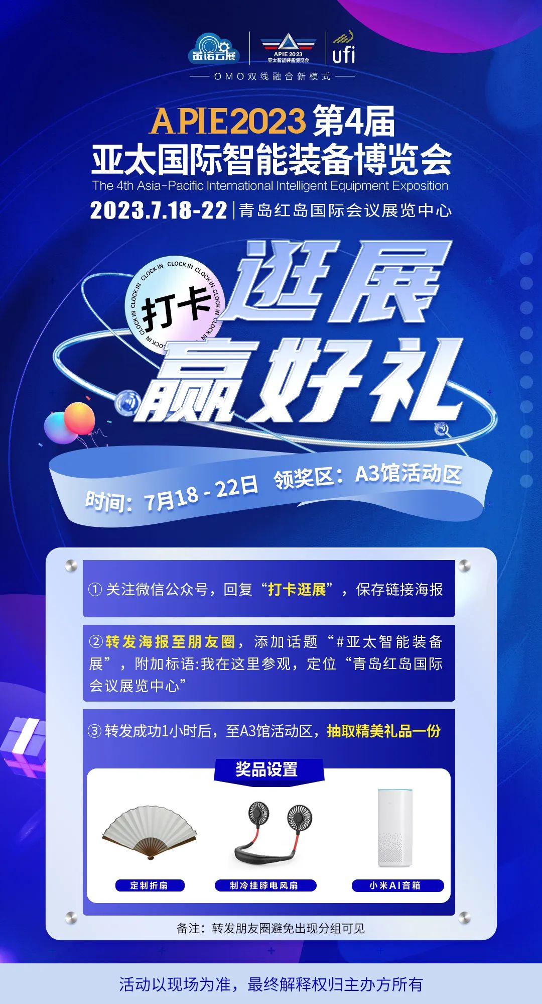 2023年7月18-22日,亚太国际智能装备博览会集合区位优势资源,专注采购成交和行业对话,积极推动智造技术与实体经济深度融合,赋能制造企业数字化转型升级,为全球智能装备知名企业与采购商打造行业交流、品牌推广、业务拓展、产品销售的理想贸易平台,树立智能制作展会新标杆!