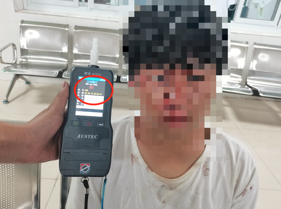 接警后,从江县交警大队民警立即赶往现场,到现场后发现,一辆摩托车与一辆小轿车发生碰撞,一旁的摩托车驾驶人浑身散发着酒气的同时,在本次事故中头部还流血受伤。