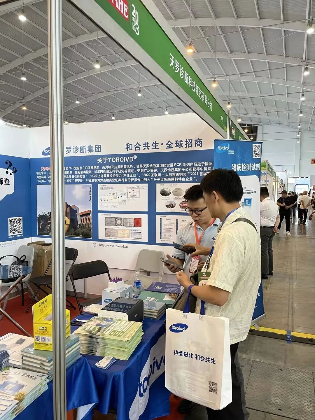 天罗诊断的展位处处彰显着专业与创新。来自各地的参观商纷纷驻足,对天罗诊断的产品和服务表达了浓厚的兴趣。天罗业务员热情地向参观商介绍公司的最新技术和解决方案,耐心解答着参观商的各种疑问。