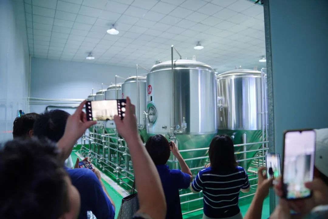 除了品鉴和分享,林总还带领各个参与会员参观精酿啤酒厂。相比于大规模生产的工业啤酒,精酿啤酒是小型酿酒厂精心酿造的,注重品质和口感。从麦芽的研磨到酵母的发酵,再到啤酒的瓶装和贮存,每一个步骤都需要精确地控制和时间的把握,然而通过发酵控制系统、灌装机器人、清洗消毒系统等一系列智能自动化设备,能够实现生产过程的高度自动化和精确控制,提高生产效率和产品质量,同时也节约了人力和资源。