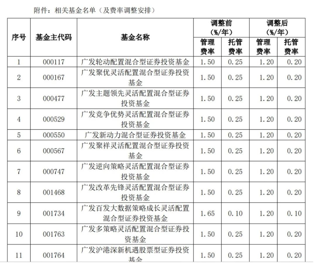 广发基金发布公告称,为更好地满足广大投资者的投资理财需求,降低投资者的理财成本,7月10日起,调低旗下部分基金的管理费率及托管费率并对基金合同有关条款进行修订。从广发基金此次费率调整来看,涉及119只基金,均为主动权益类基金,具体来看,管理费率从1.5%调整到1.2%,托管费率从0.25%调整到0.2%。华夏基金发布公告称, 7月10日起,调低旗下部分基金的管理费率及托管费率并对基金合同有关条款进行修订。此外,中欧基金、南方基金、博时基金等多家头部基金公司也发布类似的公告,费率调整方案较为相似。从整体来看,将公司旗下主动权益类产品管理费率从1.5%调整到1.2%,托管费率从0.25%调整到0.2%。针对部分基金公司发布降低旗下公募基金产品管理费及托管费的公告,证监会表示,近年来,我国公募基金行业快速发展,已成为资本市场十分重要的机构投资者,在提高直接融资比重、促进资本市场改革发展、服务居民财富管理需求、服务实体经济与国家重大战略方面发挥了积极作用。证监会监管始终坚守公募基金行业发展的人民性,持续推进公募基金行业高质量发展。今年以来,证监会广泛听取市场意见,根据行业发展实际和投资者需求,制定了公募基金行业费率改革工作方案,将监管引导推动与行业主动作为相结合,指导公募基金行业稳妥有序开展费率机制改革,支持公募基金管理人及其他行业机构合理调降基金费率。中国基金业协会公布的2023年5月公募基金市场数据显示,截至5月末,公募基金整体规模达到27.77万亿,超过2022年8月份的27.29万亿峰值,再创历史新高。从5月份数据上看,固收类产品是助力公募基金规模突破历史新高的“最大功臣”,包括债券基金和货币基金在内的固收类产品5月份合计“吸金”6713.69亿元,是各大类细分基金中,规模增长最多的两类产品。自2022年以来,公募基金规模已经累计7次创出历史新高,这背后的大背景是,公募基金作为普惠金融产品,已被越来越多投资者所接受,尽管随着市场波动,不同类型产品之间规模此起彼伏,但整体规模依旧有望保持向上增长,成为大资管各细分领域中增长最快的子行业。