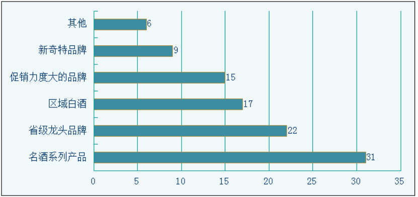 在酒说进行的“宴席用酒”调研中,31%的经销商认为名酒系列产品的选择率更高,其次就是省级龙头品牌。大家一致认为,现在消费者十分看重品牌影响力,认为名酒及系列酒更有面子,即使不是这些一类品牌,也会选择市场上流行的产品,而这些产品往往是省级龙头品牌。以前有些消费者还会看重产品的包装,一些新奇特类的产品在市场上选择率也不低,但现在选择这类产品的消费者正在逐渐下降。