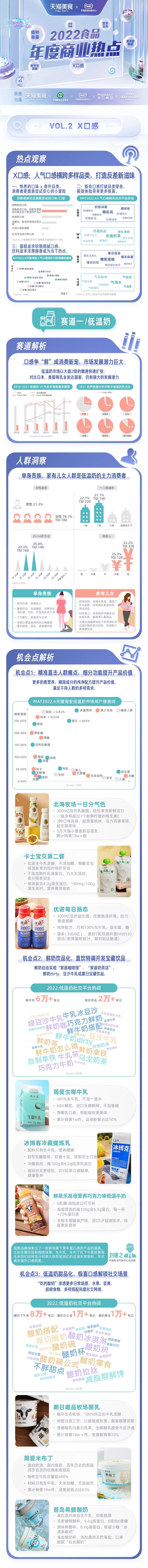 近期,天猫食品联合中国食品工业协会、天猫新品创新中心共同发布2022食品年度六大商业热点,包括营养法则、植物能量、应时而食、X口感、新中式浪潮、家乡的味道,希望能和品牌共同进行趋势创新,给消费者带来更多新美味以及更好的饮食体验。