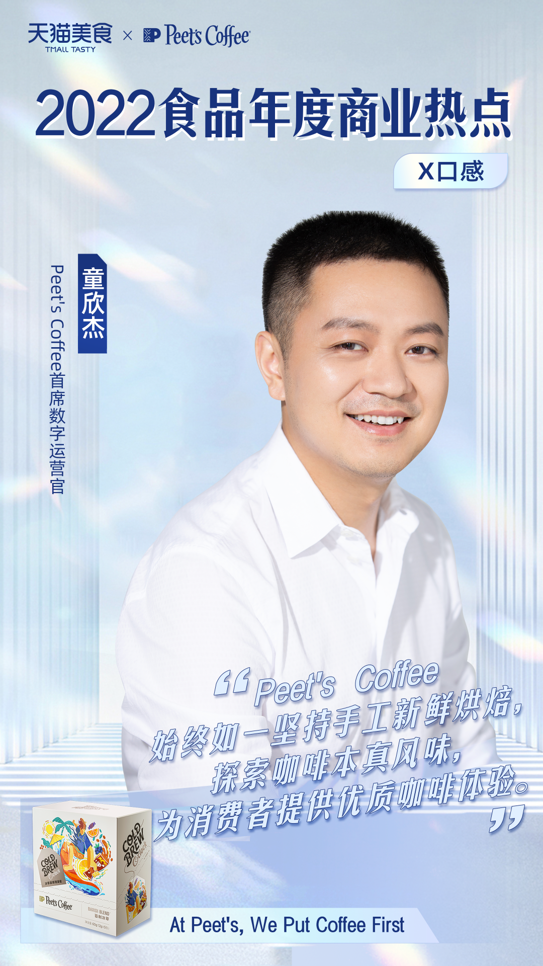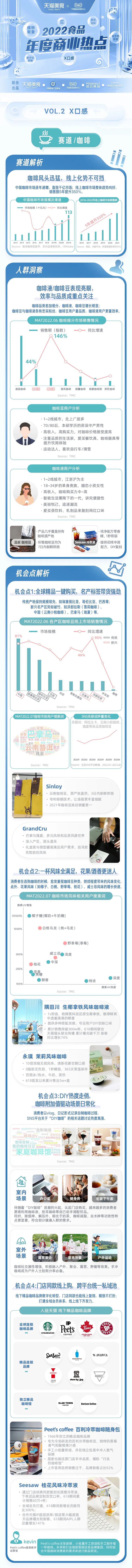 Peet's Coffee作为在天猫高速增长的代表品牌,以高品质精品咖啡而闻名。随着咖啡消费场景多元化,Peet's Coffee门店O2O外卖以及主打家庭办公室消费场景的咖啡胶囊、咖啡挂耳以及咖啡浓缩液都实现了高速增长。
