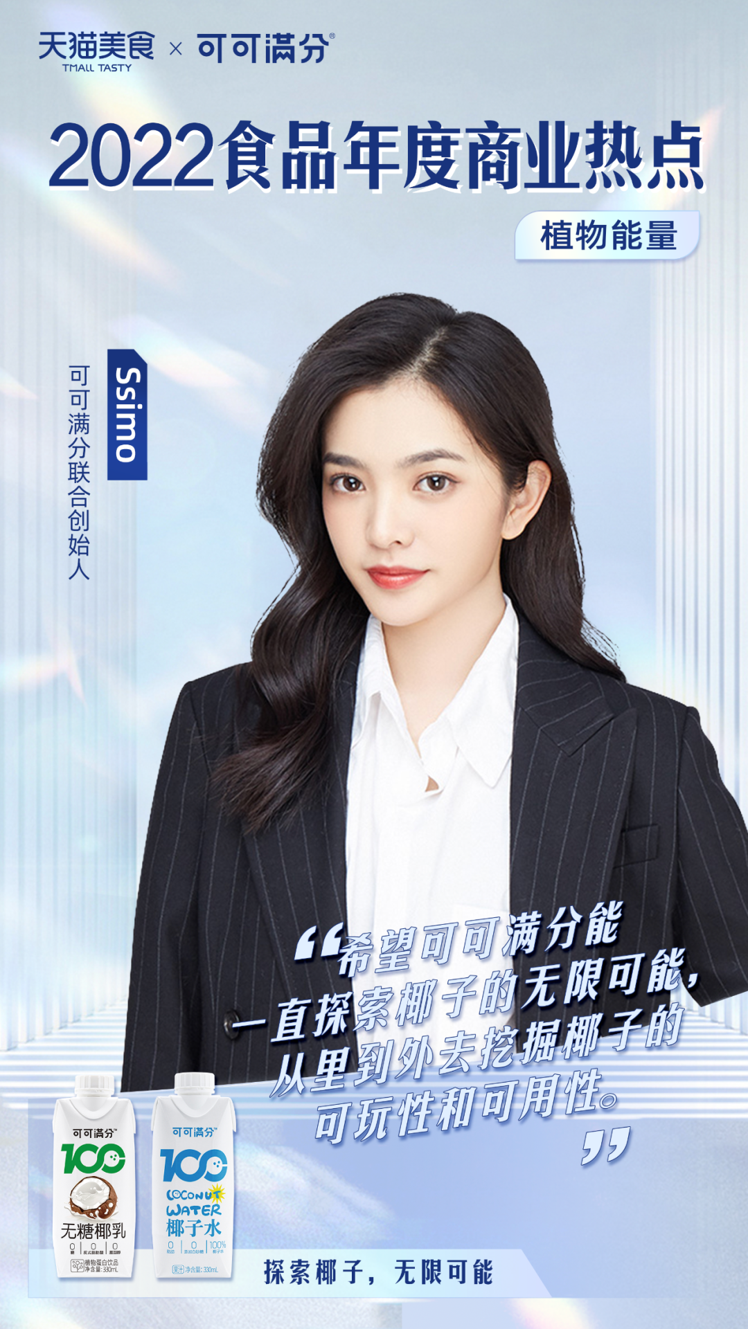 在0卡糖等趋势下,18-35岁的人群已经不满足于在传统品牌中挑选,开始寻找更加健康的替代品。椰子生活方式品牌可可满分,围绕无糖椰乳,将风味椰乳、椰水椰乳品类夯实后,进一步拓展椰子产品品类到食品零食和个护领域。可可满分联合创始人Ssimo表示:“希望能探索椰子的无限可能,从里到外去挖掘椰子的可玩性和可用性。”
