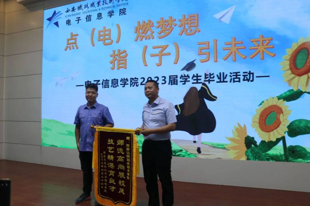 刘伟代表电务段送上了“师德高尚展校风,技艺精湛育良才”锦旗,再次对学院给予的大力支持表示诚挚感谢。