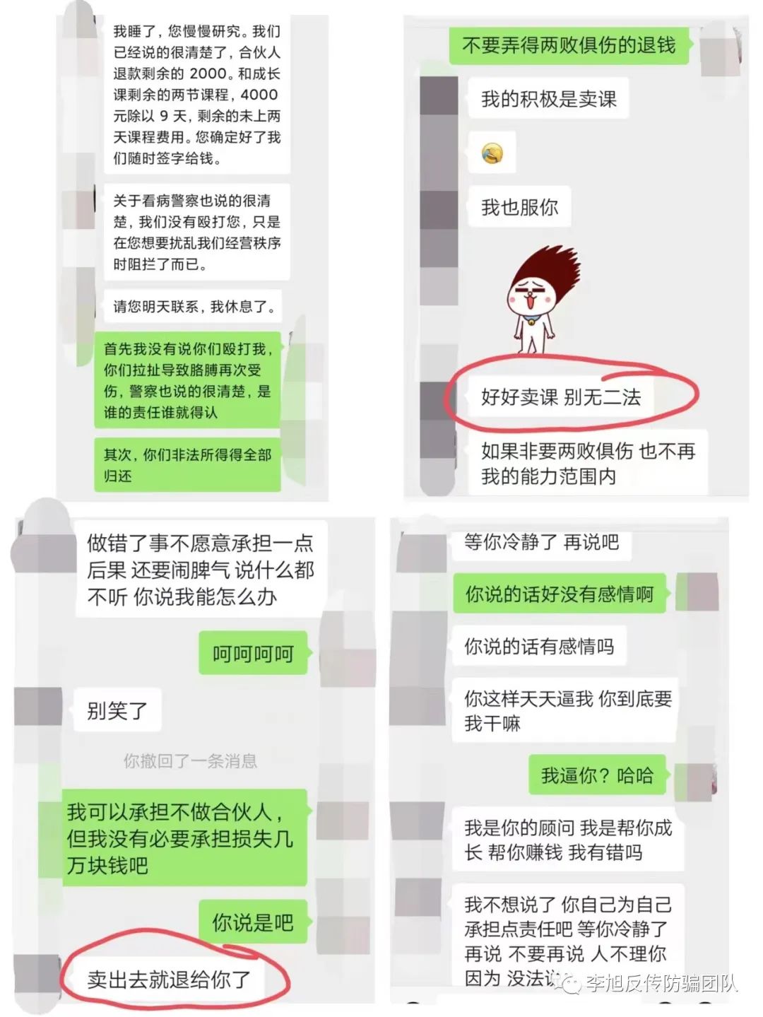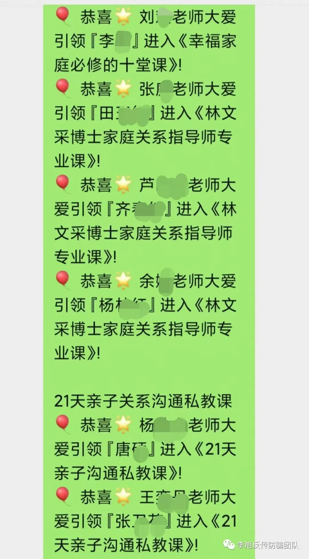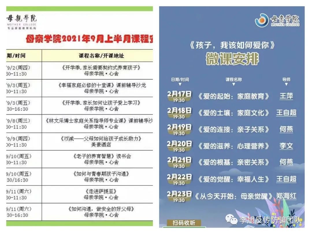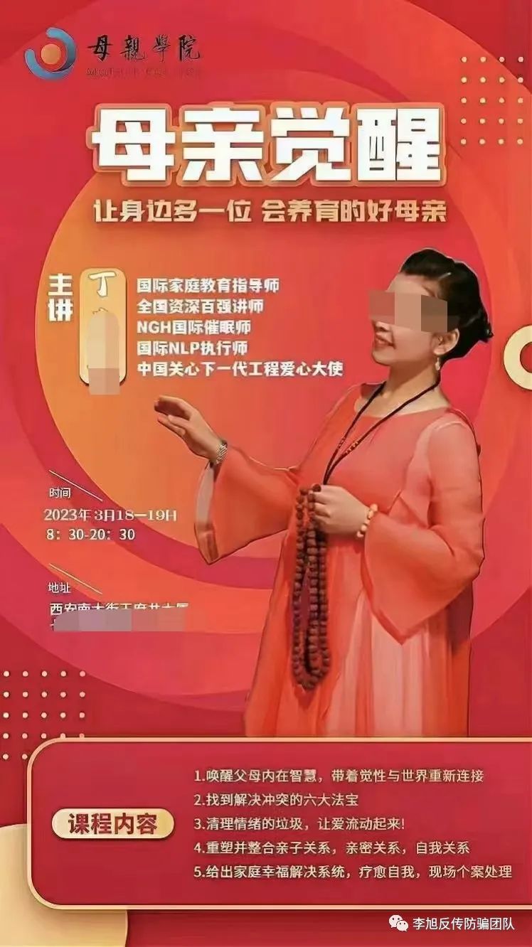 目前为止,郝女士已被机构人员拉黑,而“母亲学院”仍在大力拉新人加入,销售高额培训课程。李旭反传防骗团队将继续密切关注此事。