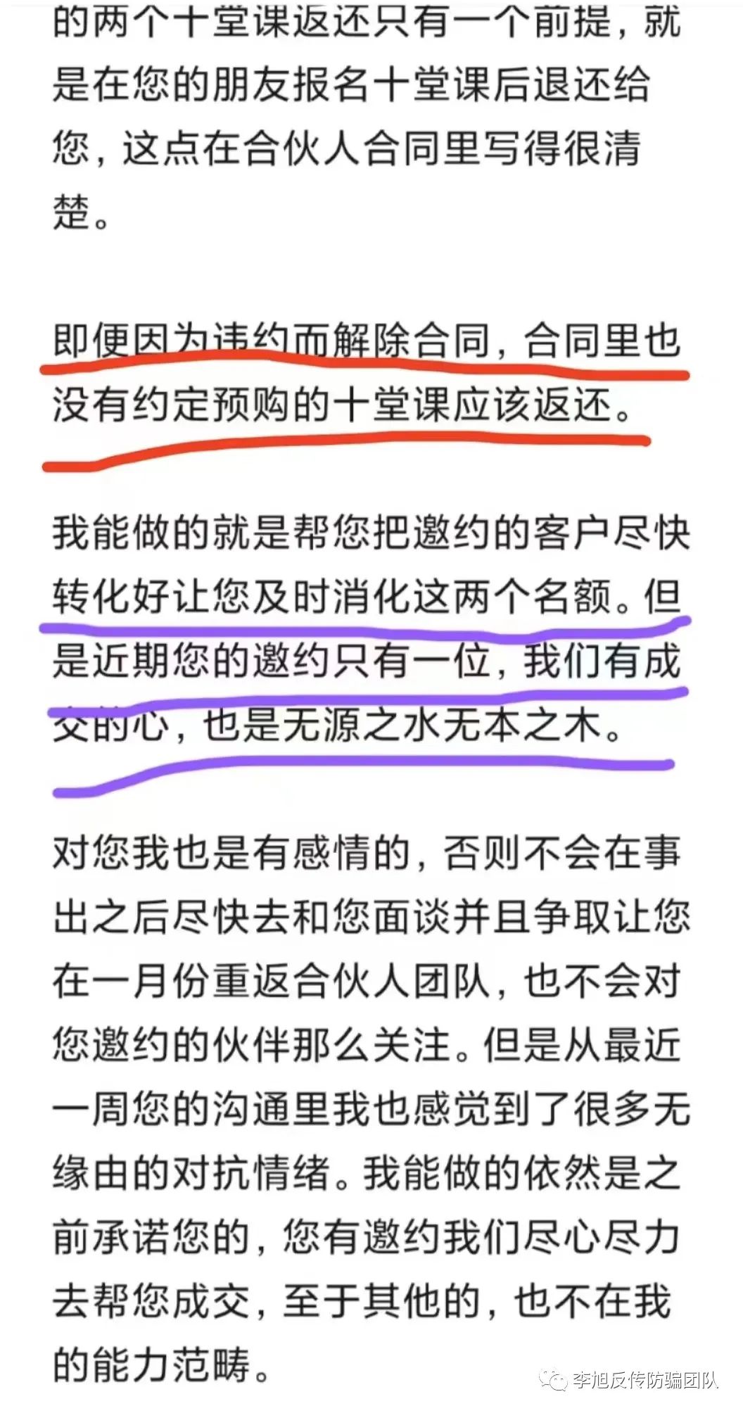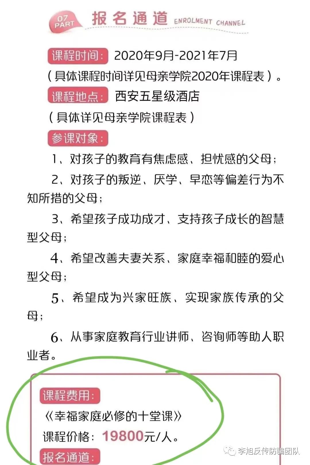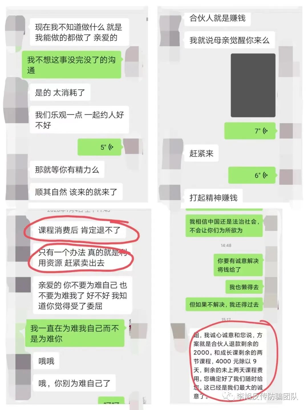 目前为止,郝女士已被机构人员拉黑,而“母亲学院”仍在大力拉新人加入,销售高额培训课程。李旭反传防骗团队将继续密切关注此事。