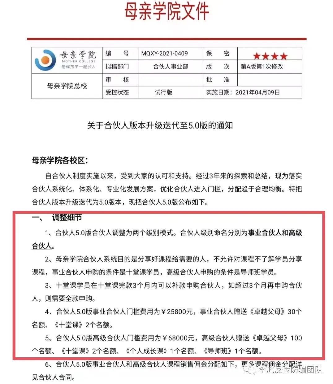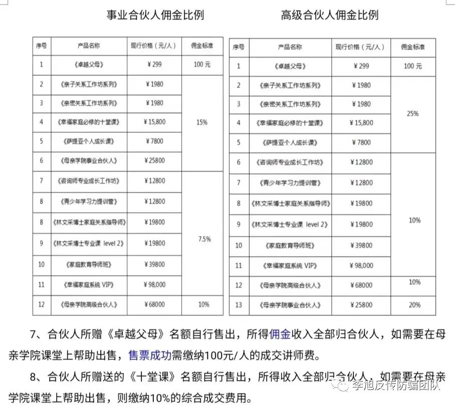 根据“母亲学院”发布的合伙人说明,合伙人分为“事业合伙人”和“高级合伙人”两种身份。成为“事业合伙人”需要支付25800元的费用,成为“高级合伙人”则需要支付68000元。同时,不同级别的合伙人都会获得相应数量的免费课程,这些课程可以供合伙人自己参加或售卖以获取收益。