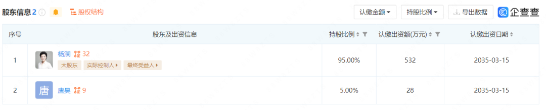 企查查资料显示,北京风华雅集管理咨询有限公司成立于2015年,法定代表人为沈齐,注册资本560万人民币,杨澜持有该公司95%股份。