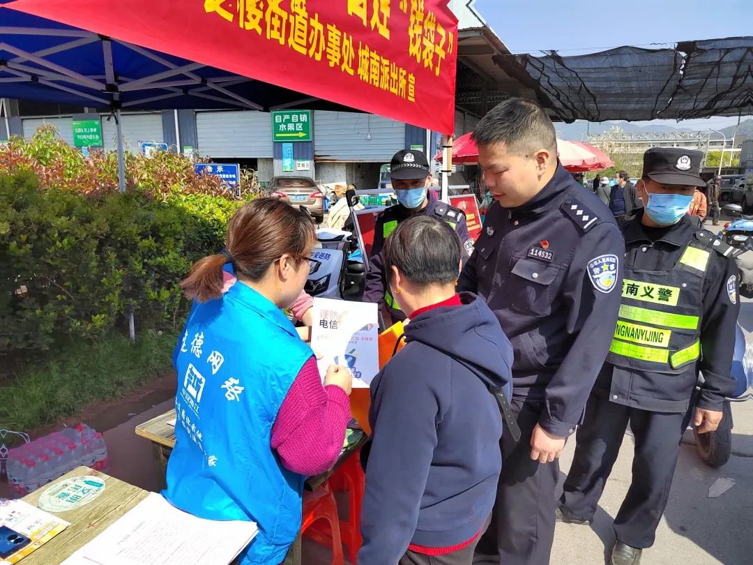 近期,建德市更楼街道农批市场正在开展春季美食服装百货展销会,更楼街道平安办紧紧抓住人员聚集、人流量大的有利时机,组织志愿者、村社网格员、城南义警、更楼小学老师等化身“反诈骗宣传员”,深入市场,通过摆摊设点、张贴海报、发放宣传册等形式,开展“反诈宣传不停歇 守护百姓‘钱袋子’”为主题的普及宣传防范电信网络诈骗知识活动,将反诈知识送到商户、逛街群众面前,为大家牢牢筑起防范电信网络诈骗的“防火墙”。