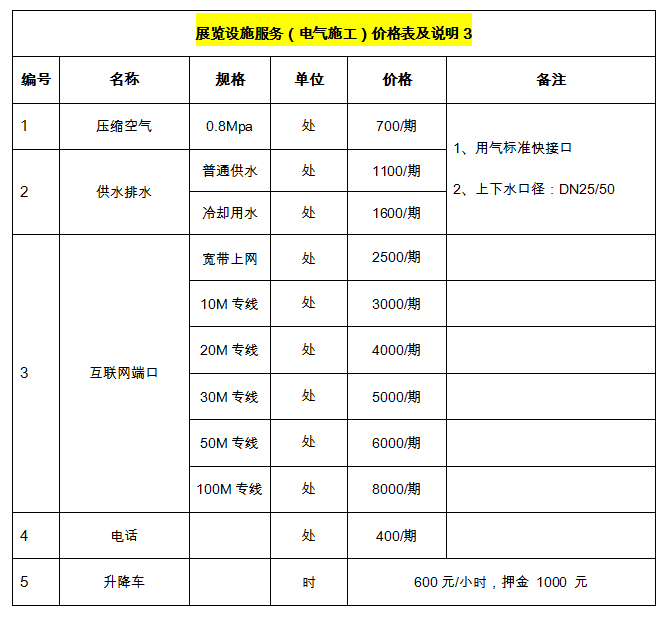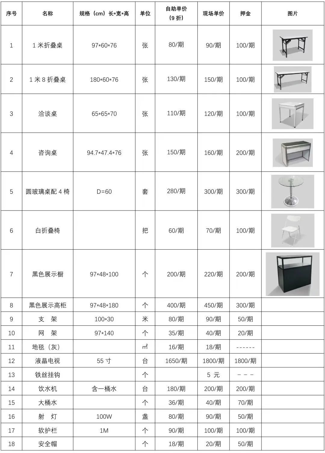 (按时布展的企业免费、不按通知时间布展的企业按以下收费标准收费)