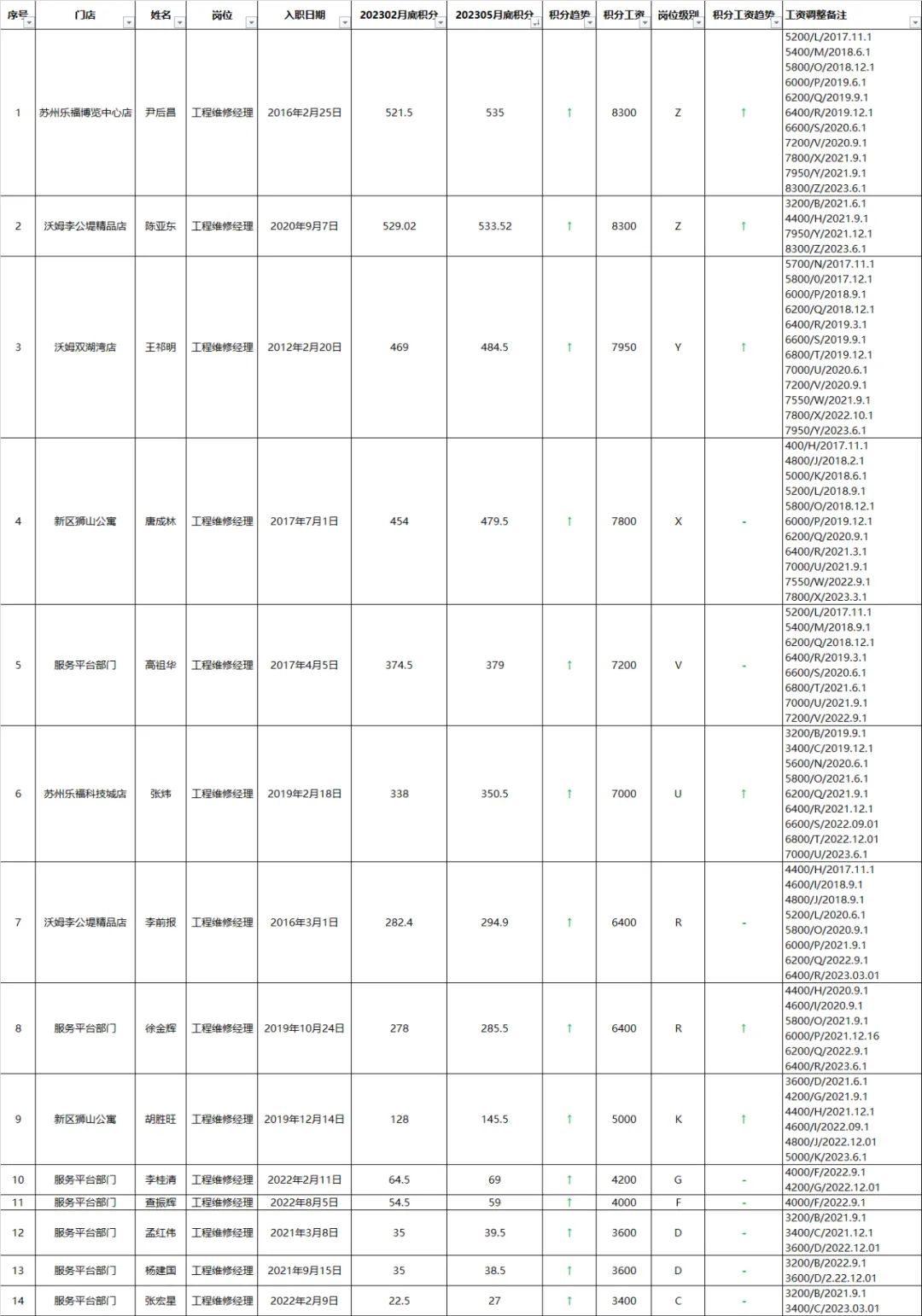 各位同事好,以下为2023年03月-2023年05月荣锦企业工程岗员工积分排名列表,现做公示,请各位同事知晓!