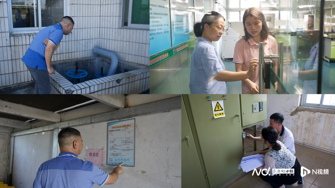 “这个灭火器的检查卡记录到上一次巡查是5月4日,也就是说之后的两个月没有巡查过,说明你们日常对消防器材的巡检还存有一些不到位的地方”“中央空调压力管道上安置有压力表,但是安全阀却拆除了,那压力管道就会缺乏安全保护,并且压力表不定期校验就无法确保是否处于正常工作状态”“你们将爆破伤害和铅尘纳入企业危险源与风险分析这一项,可这在你们公司基本是不可能发生的事情,把爆破伤害和铅尘写上去,说明对企业的危险源与风险分析不够准确,没有严格按标准来勘察和编制”检查组走进广东娜菲实业股份有限公司,通过查阅记录、现场问询、实地检查等方式深入生产车间、消防泵房、消防控制室、仓库等场所进行检查,指出潜在隐患。