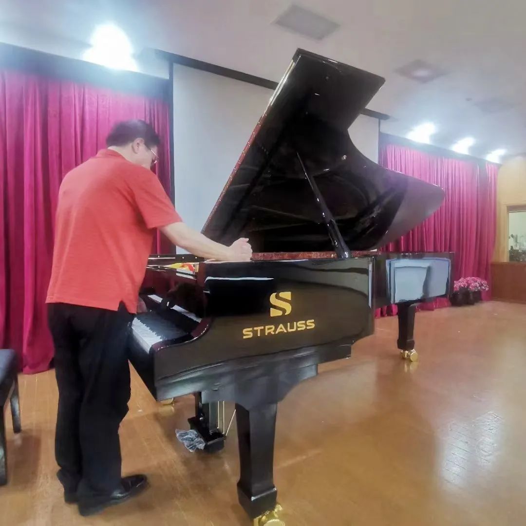 良好的保养维护是钢琴优良品质的重要组成部分。为保障比赛用琴在整个比赛过程中始终保持最佳状态,助力每一位参赛小选手发挥出最佳演奏水平,施特劳斯技术总监李炳男全程为钢琴“保驾护航”,他在比赛前仔细检查钢琴并进行精准调律,在比赛中场又进行及时调律,用一丝不苟的工作态度和精益求精的工匠精神,确保钢琴以最美妙的音色和最精确的音准呈现于赛场。