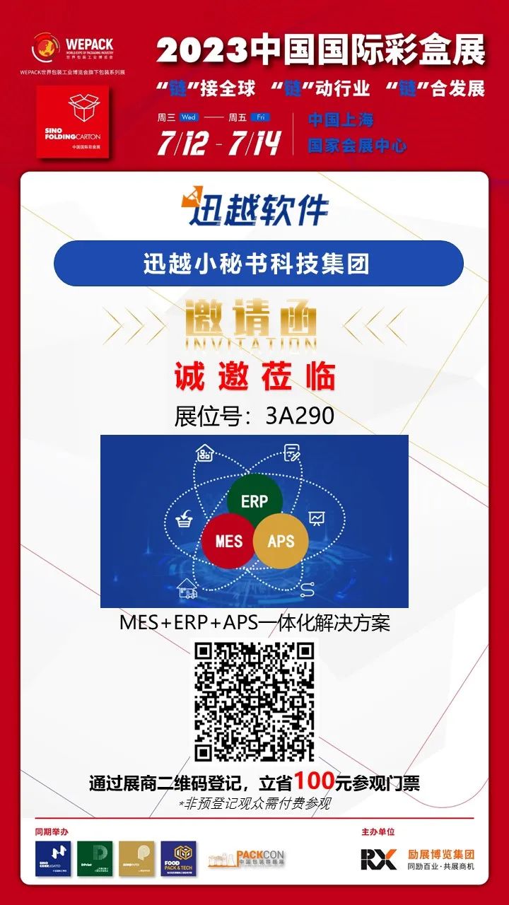 想要用好APS,还有很多门道,想要了解更多,欢迎来中国国际彩盒展跟我们一起探讨!7月12日-7月14日上海.国家会展中心,我们在3号馆展位“3A290”等你来!