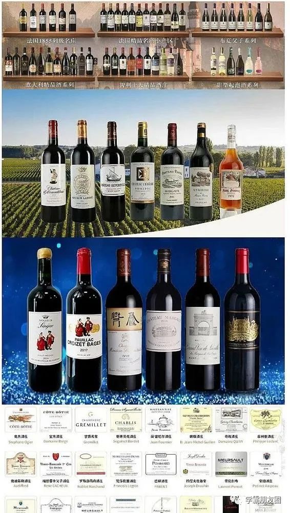 全球名庄汇聚:拉菲、拉图、玛歌、木桐、侯伯王、龙船、雄狮、费里埃、力士金、露仙歌、金玫瑰、狄士美、金钟、杜霍、克拉米隆、达玛雅克、歌碧、奥巴里奇、杜扎克、骑士、美讯、活灵魂、作品一号、威玛、奔富、安东尼世家、里科萨、鲁伯特等顶级名酒酒款。
