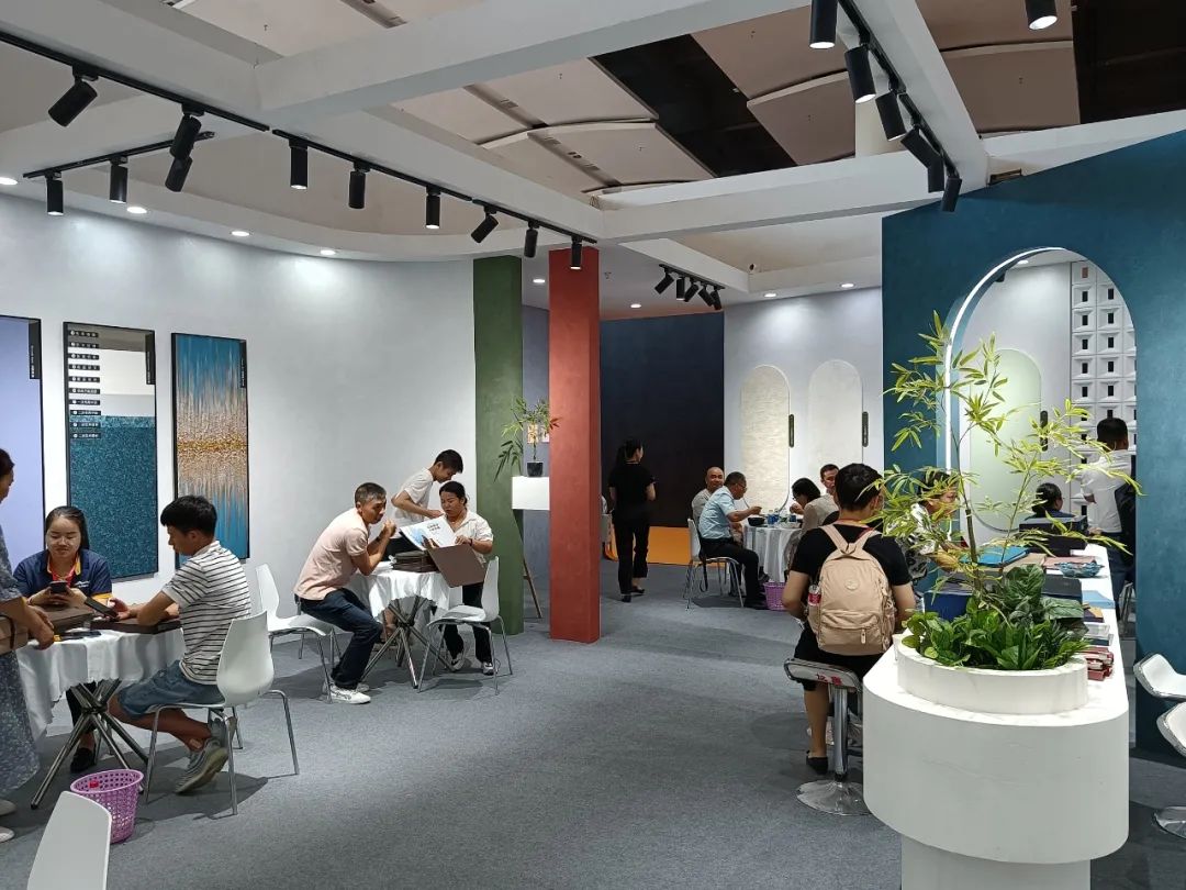 此次广州建博会,君匠世家艺术涂料简奢大美风尚展馆全新升级,以极简轻奢为设计理念,融入现代家居装饰元素,尽显各类产品高级质感。整体空间以灰白为主基调,通过色彩的点缀,让空间有了视觉跳跃感,打造出家居新体验!