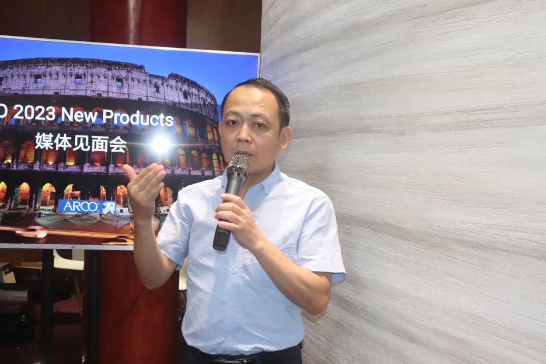 发布会伊始,意大利ARCO总部CEO Mr. Fabrizio Fusco法布里奇奥福斯科在致辞中介绍了意大利ARCO奥可的品牌发展吏,并对中国运营团队所做的市场工作表示高度认可, 非常看好ARCO奥可品牌在中国市场的发展。