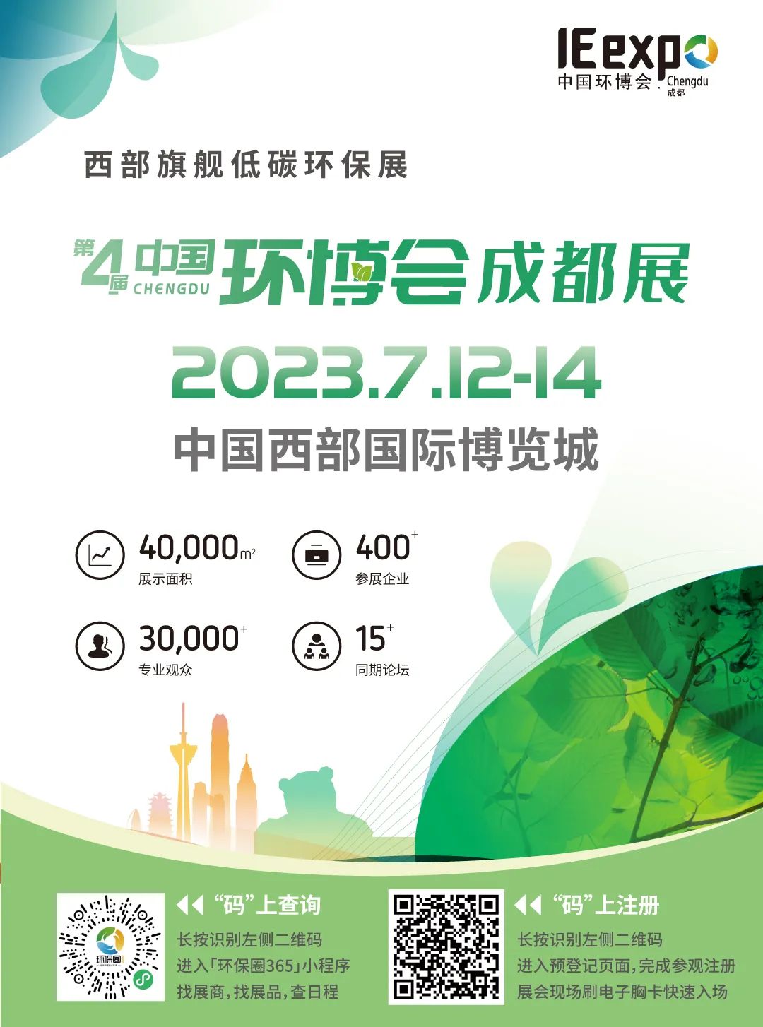 7月12-14日,西部旗舰环保展—第四届中国环博会成都展即将在成都天府新区的西博城隆重举办!展会期间,不仅可以看到超过5000种环境污染治理前沿解决方案,同期还有产业园区考察活动可报名参与,进一步了解四川的市场状况。半天逛完展会,晚上可以到展馆对面的天府会议中心,参加正在举办的第六季兴隆湖美食节暨迎大运·烟火成都·天府正兴啤酒节!享受夏日里湖边的啤酒,与同事和合作伙伴感受微醺的烟火气!快来扫描下方二维码实名注册参观2023中国环博会成都展,现场出示电子胸卡,即可入场!