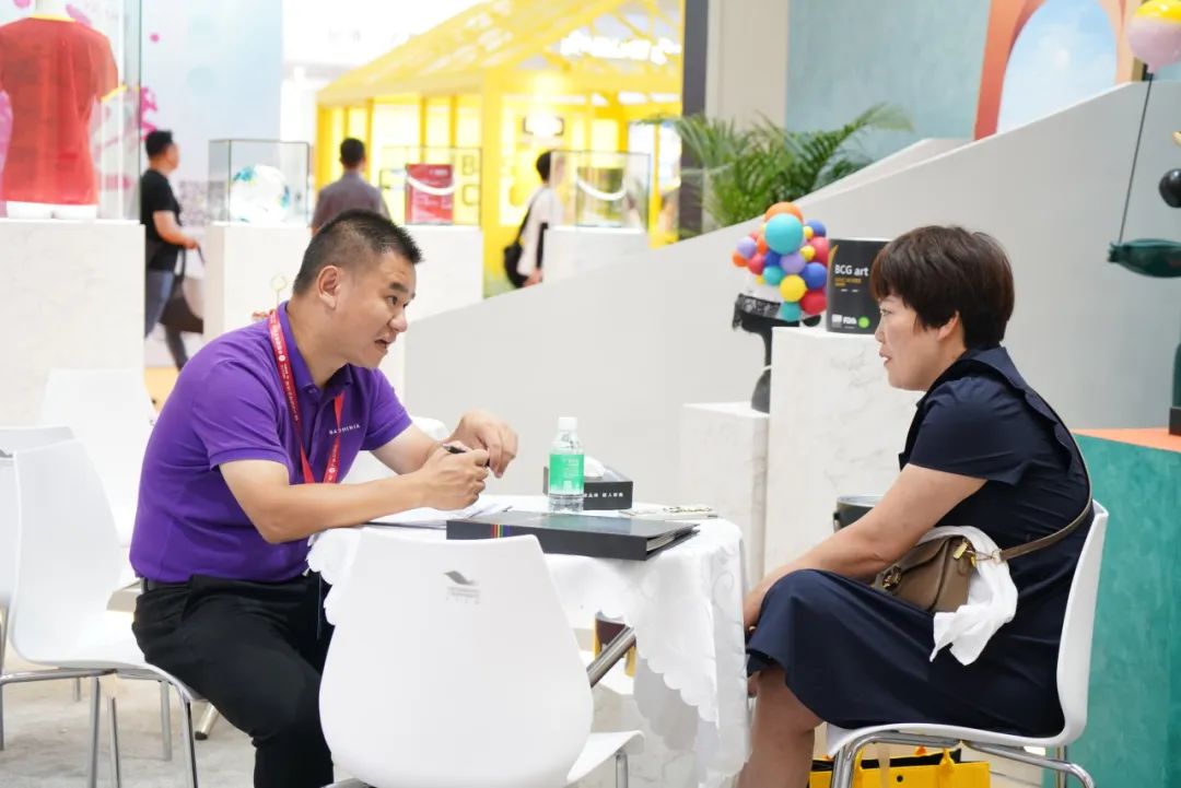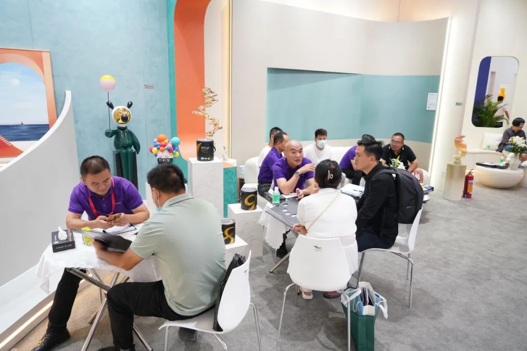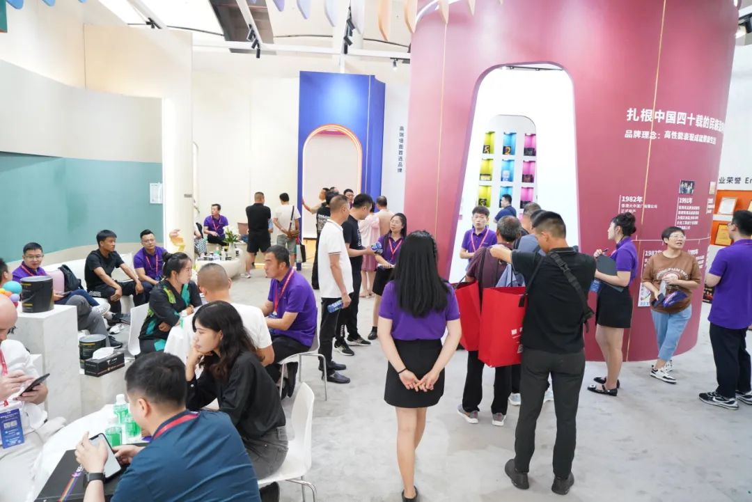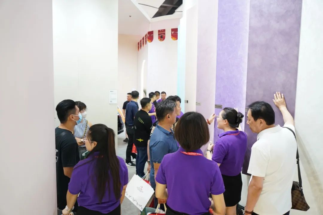 为了让观众更直观地感受到BCG艺术涂料,紫荆花在展馆的布置上别具匠心,从场景展示区、品牌荣誉区、洽谈区等布局设计,为广大参观者打造高颜值的沉浸式体验展馆。展馆内人山人海,一片热闹,大量客商在现场交流、洽谈、签约。