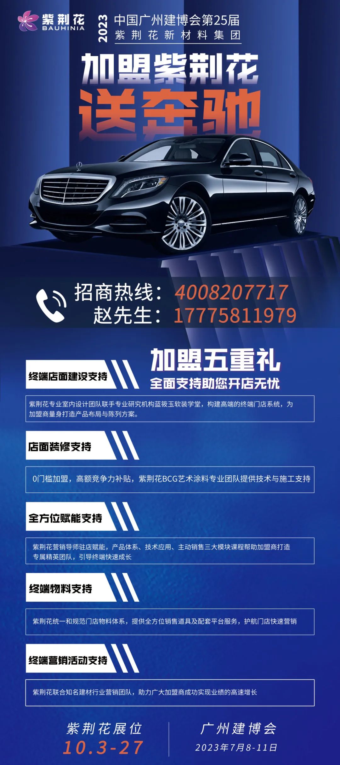 明日(7月10日),紫荆花在B区10.3-27展位继续等候合作伙伴的到来。届时,叶氏化工集团行政总裁叶钧先生将莅临展位现场参观及接受媒体采访,更多精彩,不容错过。紫荆花诚挚邀请您亲临现场,一同见证BCG艺术涂料创新领跑的力量。
