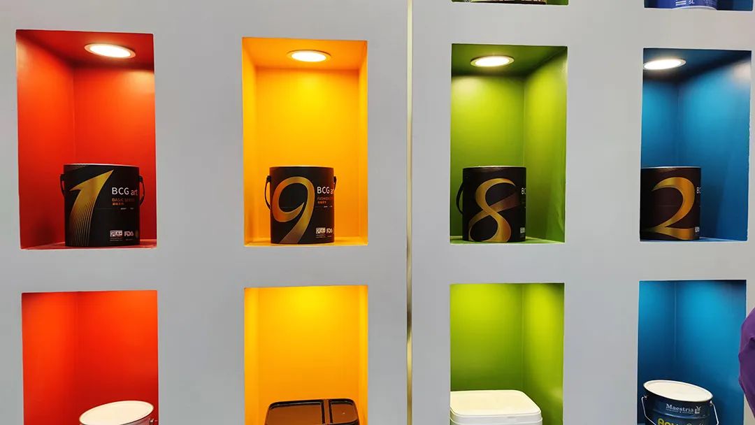 产品展示墙上,“1”“9”“8”“2”系列艺术涂料产品十分引人瞩目