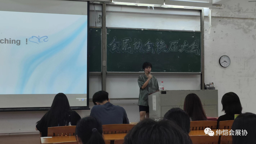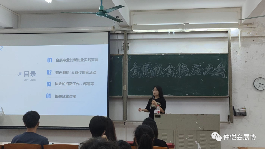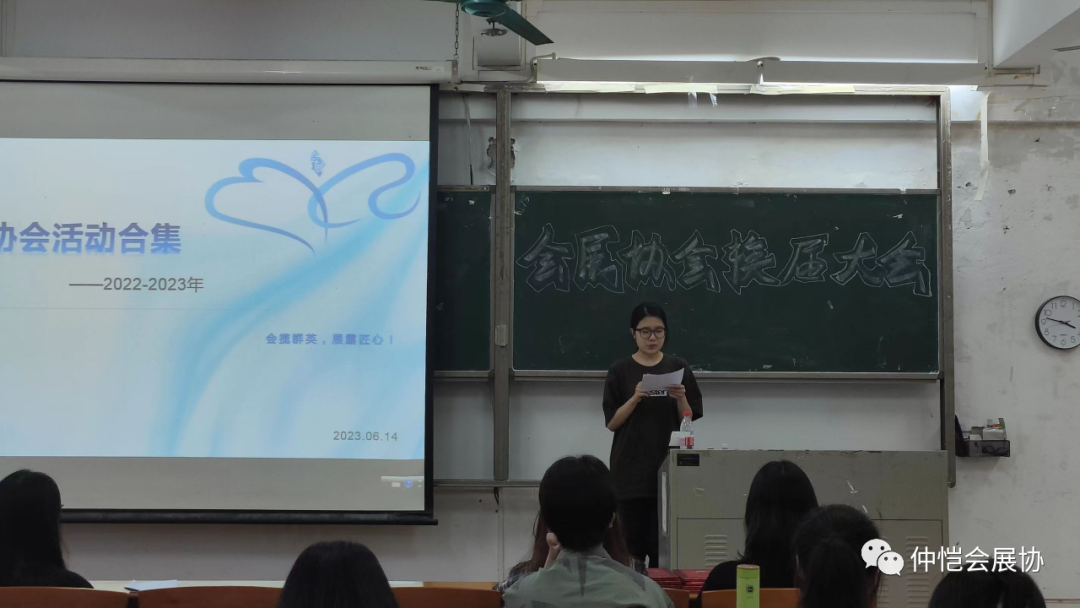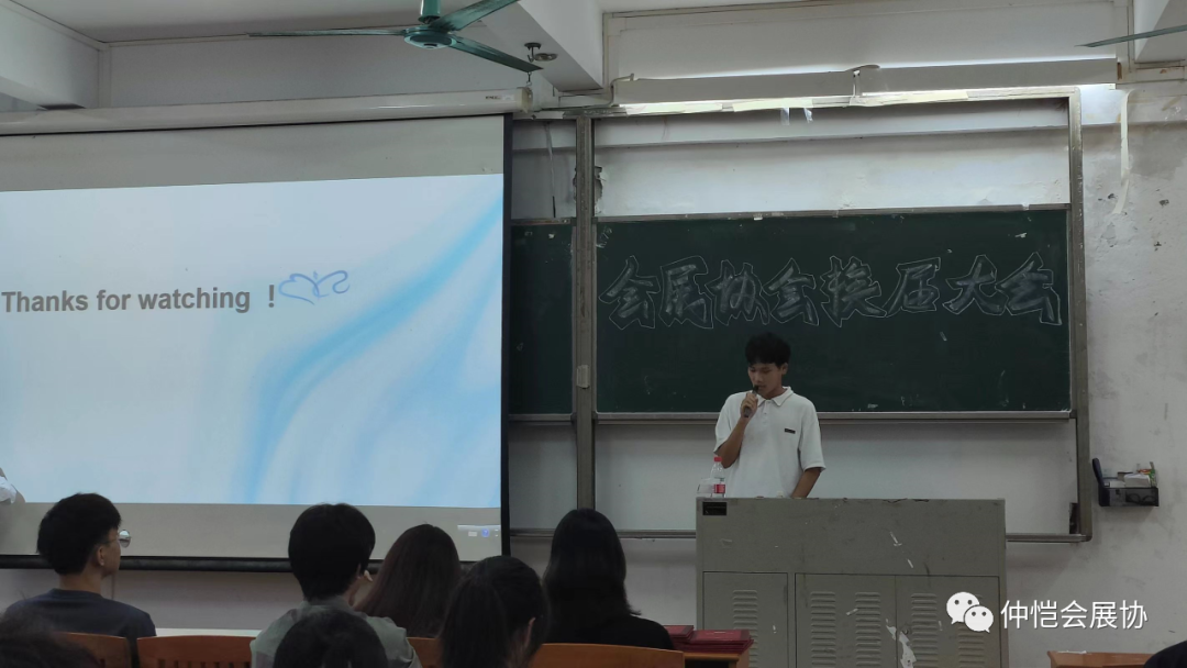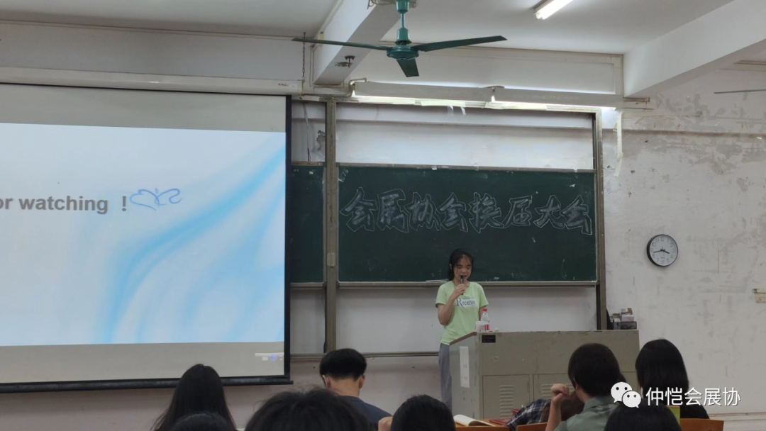 会展协会执行部社长庞慧琳师姐对于社团的各项工作以及活动作出了详细的总结,还谈到展协的贡献和成就以及自身工作中的不足等,最后对社团各成员表示感谢。