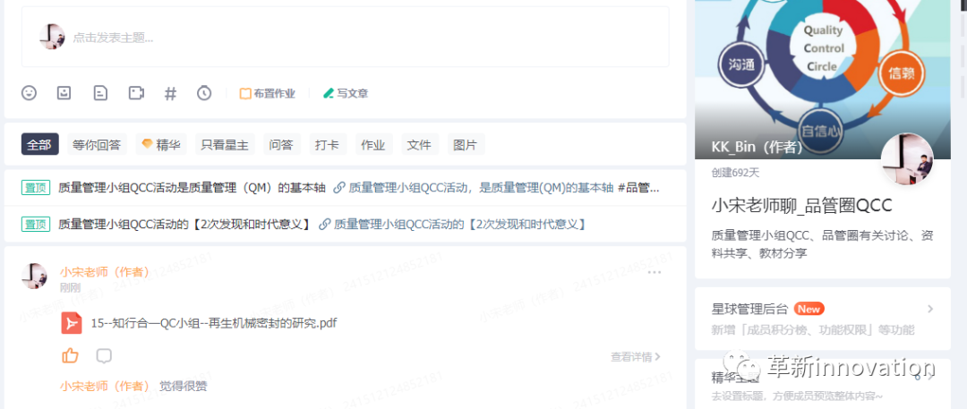 创建的“质量管理小组/品管圈QCC”的知识星球,