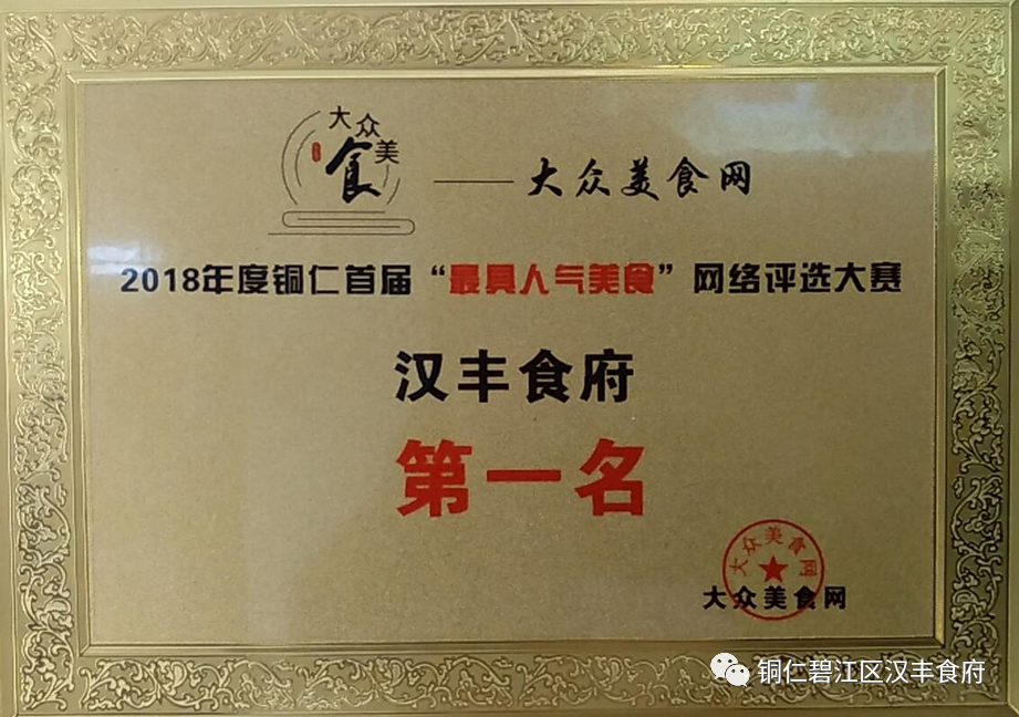 荣获铜仁首届“最具人气美食”网络评选大赛第一名。