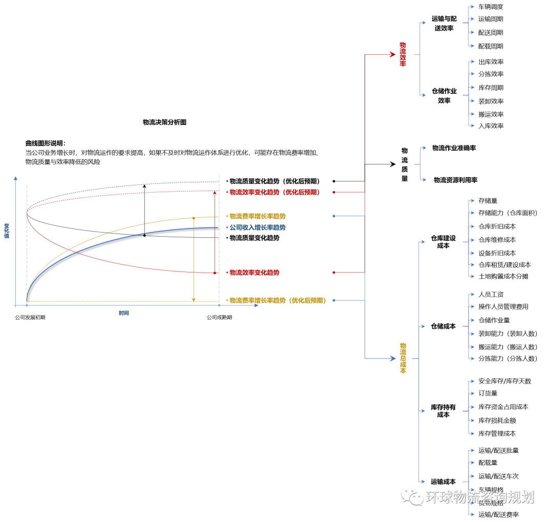 以上为一个趋势图,从图上的曲线趋势来看,处于一种单一、清晰的趋势。但是在企业实际运作过程中,物流成本、物流效率以及物流质量并非一定会呈现出以上的单一趋势状态。更可能是一种折线的状态,也会有更多的不确定性,但这并不妨碍我们用更合理的决策去让物流运作更加合理,因此,我们需要有合理的决策方法。