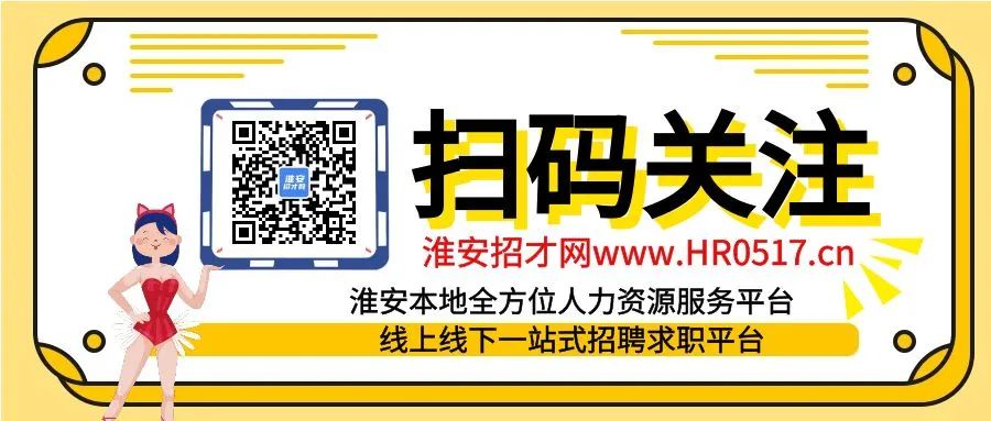 免责声明:如有变更请以原发布者为准。(电话联系时请说明是在淮安招才网看到的招聘信息,邮件申请时请在标题结尾加上信息来源于“淮安招才网”)。本文内容及未标注图片来自网络,版权归原作者所有,仅供分享之用,不代表本公众号观点。如转载稿涉及版权等问题,请留言联系我们删除。