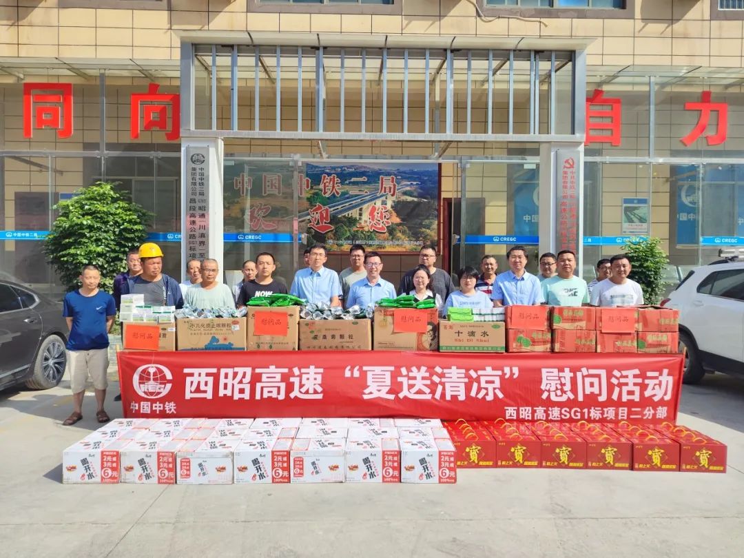 近期,公司党委副书记、工会主席陈桂虎走进公司成渝中线铁路项目施工现场开展“夏送清凉”慰问活动。陈桂虎为奋战在建设一线的基层员工和工人们送上了夏桑菊颗粒、藿香正气液、西瓜、王老吉等防暑降温物品,并提醒大家在工作的同时要增强自我保护意识,注意防暑和劳动安全,做到劳逸结合,确保生产和安全两不误。陈桂虎强调,项目各部门要切实做好防暑降温工作,合理调整作息时间,全力保障夏季高温条件下的安全生产和职民工身心健康。