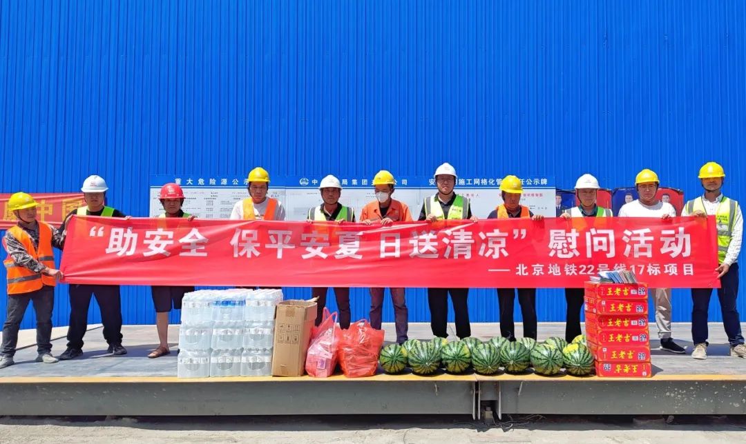 为切实做好防暑降温工作,保障生产一线职民工身体健康,确保职民工安全度夏,北京地铁22号线项目于近期开展了“助安全 保平安 夏日送清凉”慰问活动。项目部为职民工送去了王老吉、藿香正气液、十滴水、西瓜等清凉物品,同时发放了安全手册供大家学习,切实提升了职民工安全生产意识和能力。同时,项目部要求各班组负责人科学合理安排好民工作息时间,备足防暑降温药品,共同克服高温困难。