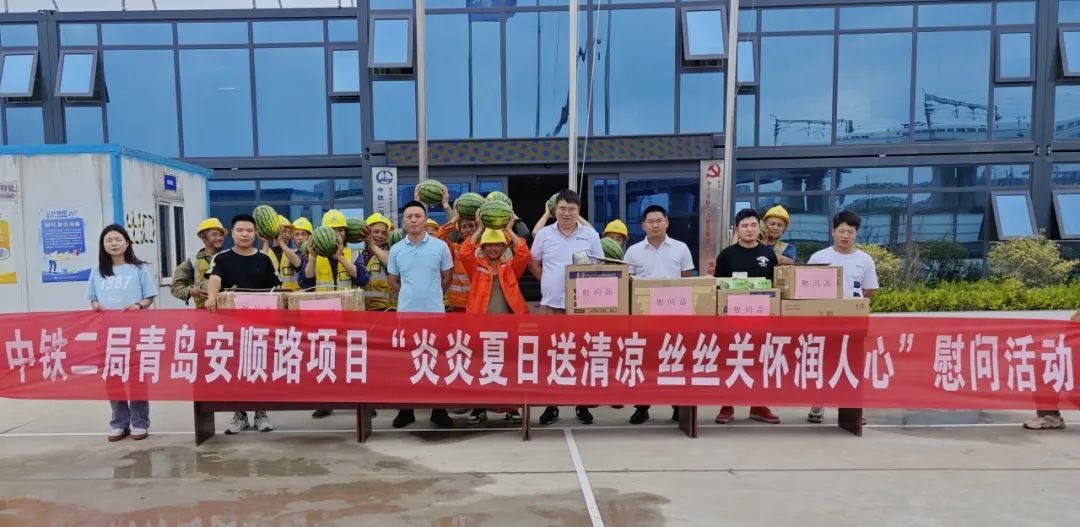 近期,公司青岛安顺路项目开展了“炎炎夏日送清凉,丝丝关怀润人心”夏送清凉慰问活动。项目部为职民工分发了藿香正气口服液、菊花茶、金银花茶、花露水、电蚊香、西瓜等防暑降温用品,对在炎热天气下仍然坚守在一线施工的职民工表示亲切慰问。此次慰问活动充分体现了工会对职民工的关爱,充分激发了职民工的工作热情,大家纷纷表示有了组织的关怀,夏季作业将更加有干劲。