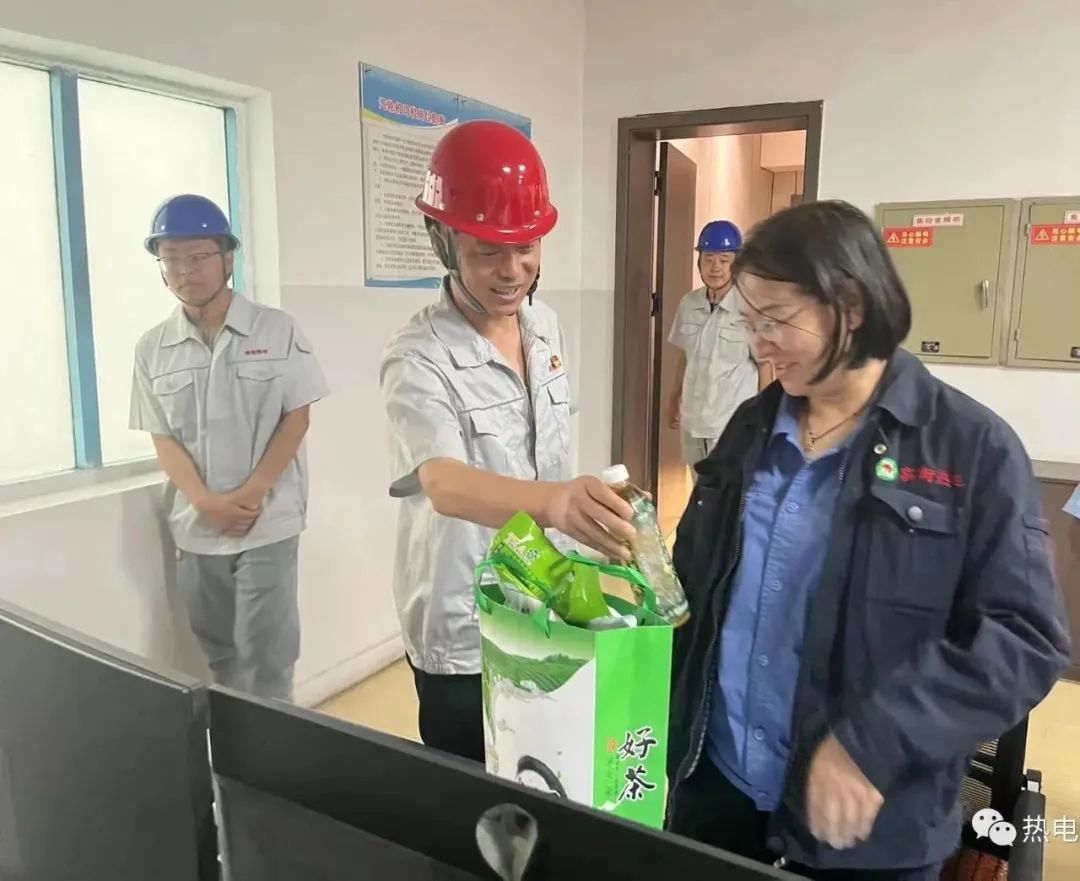 夏送清凉到一线,丝丝关爱沁心田。近期天气持续高温,热电公司广大干部职工依然奋战在安全生产一线,为了有效改善暑期高温一线职工生活条件,切实维护公司广大职工职业安全与健康,7月10日,热电公司工会开展“平安度夏送清凉”慰问活动,为奋战在高温一线的劳动者们送上一份清凉、一份关怀。