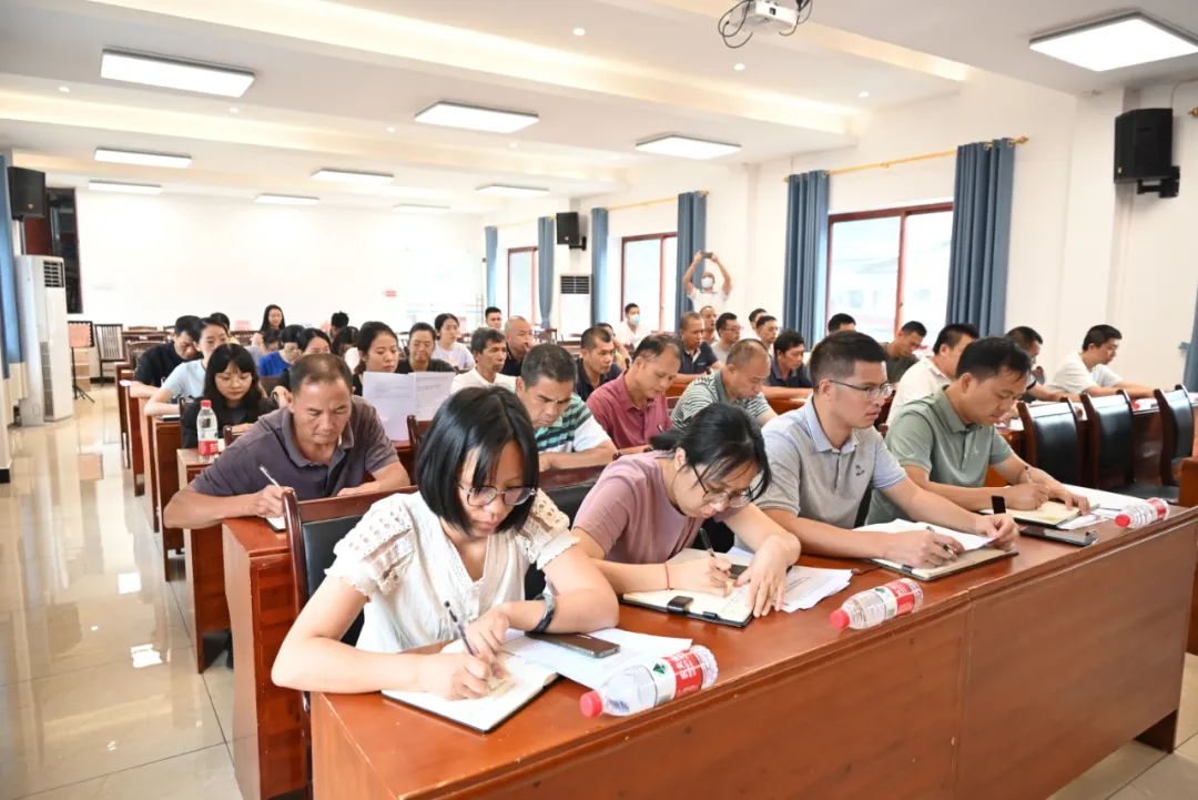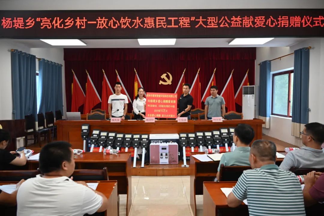 9月21日,杨堤乡“亮化乡村——放心饮水惠民工程”大型公益献爱心捐赠仪式在乡政府二楼会议室举行。杨堤乡三家班子成员,爱心企业桂林市雅肯科技有限公司负责人於敬睿,各村级党组织书记、主任,全体挂点组成员,乡村建设综合服务中心全体干部职工,农业农村综合服务中心全体干部职工参加了捐赠仪式。
