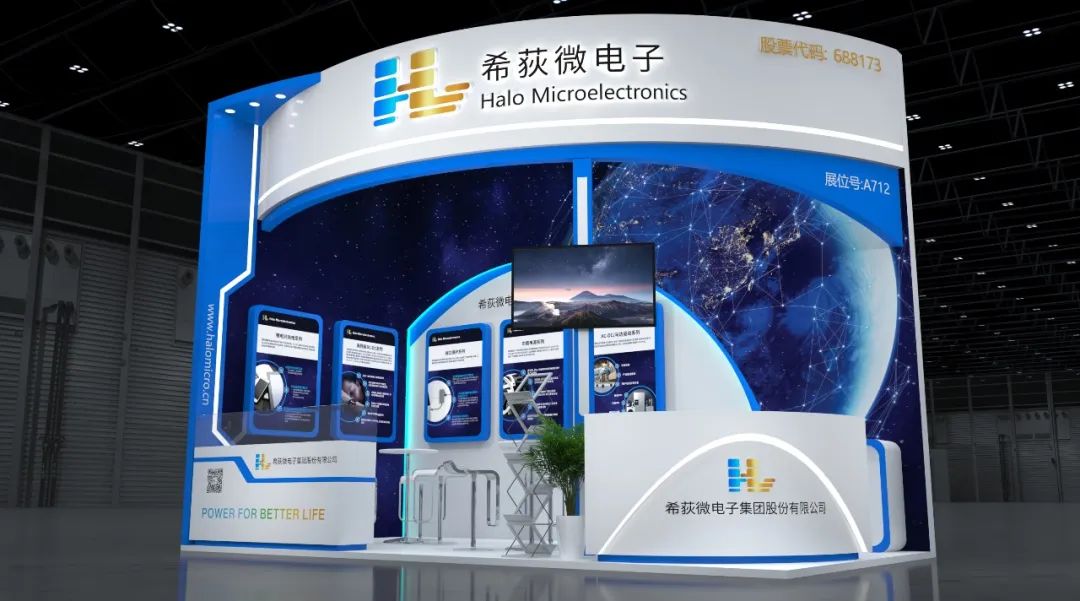 从20号门进来后,直接往左走,走过两个展位,希荻微的展位就在第三个展位的位置。很容易识别,展位号码为A712。